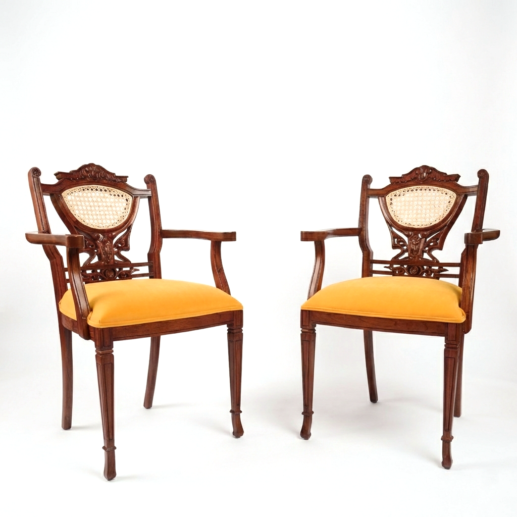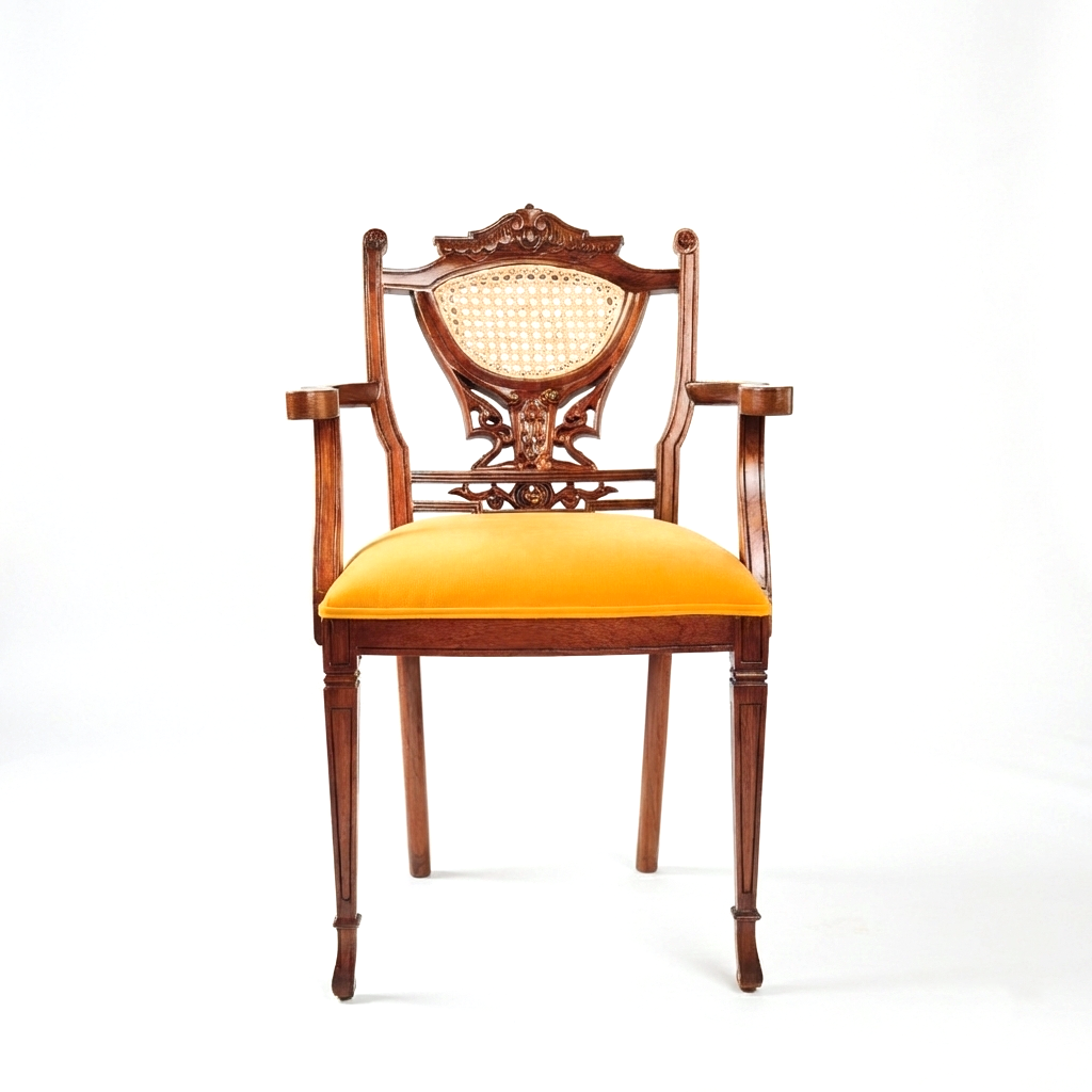 Crafted with precision and elegance, this Modern Chair blends timeless design with everyday comfort. Built from premium solid wood, it features clean angular lines, a natural cane backrest for breathability, and a plush cushioned seat for long-lasting ease.
